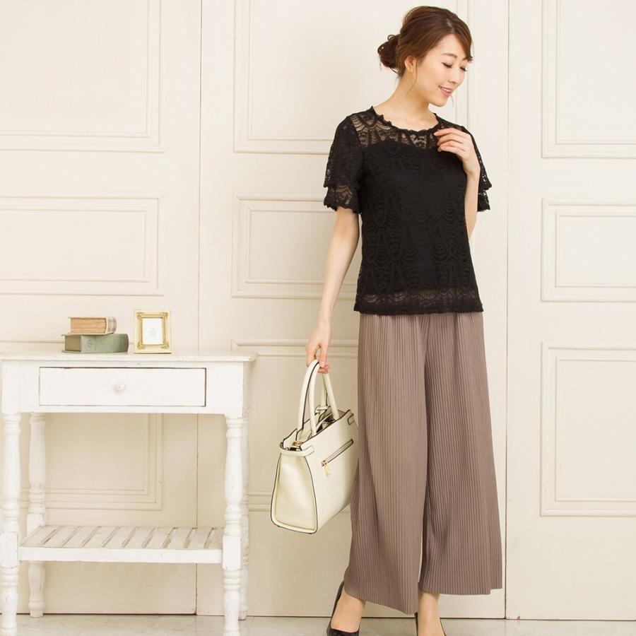ブラウス レディース Tシャツ 半袖 オフィス 黒 ベージュ 夏 花柄 W半袖レースブラウス ファッション通販アミアン ハウス 通販 Yahoo ショッピング